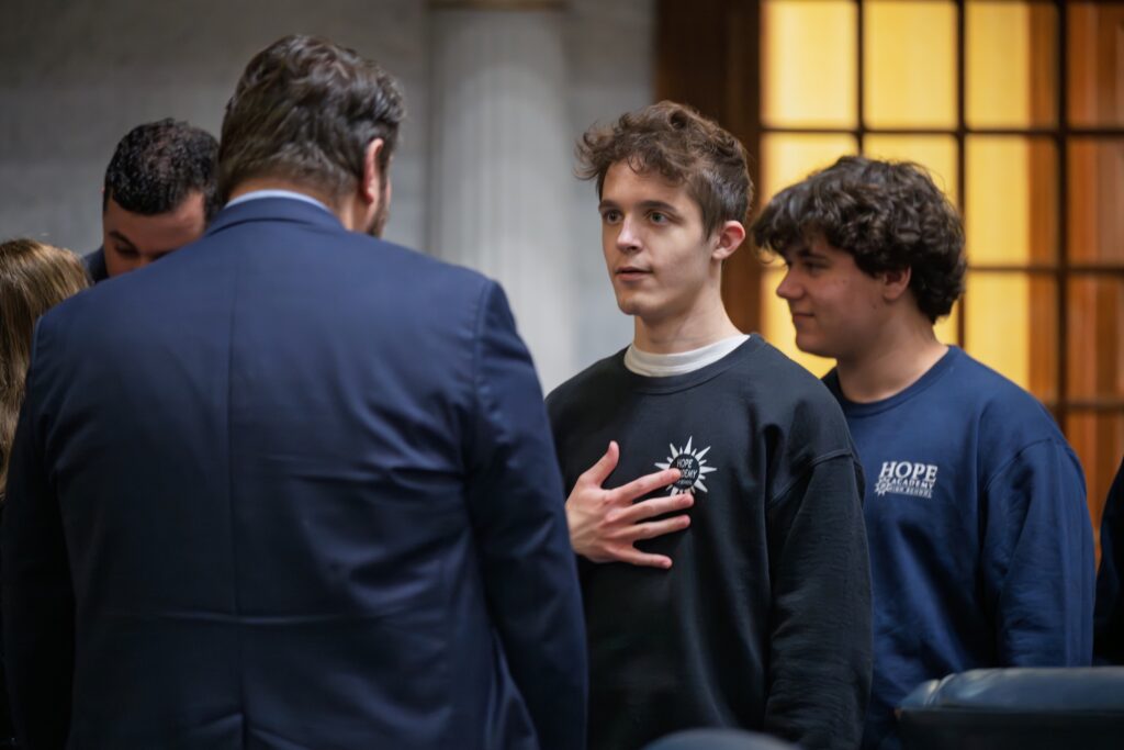 The moment was especially meaningful because it was shared by members of the Hope Academy community. Seniors, alumni, board members, and staff were present at the Statehouse to witness the recognition together — a reflection of the many people who have shaped and supported the school over the past two decades.