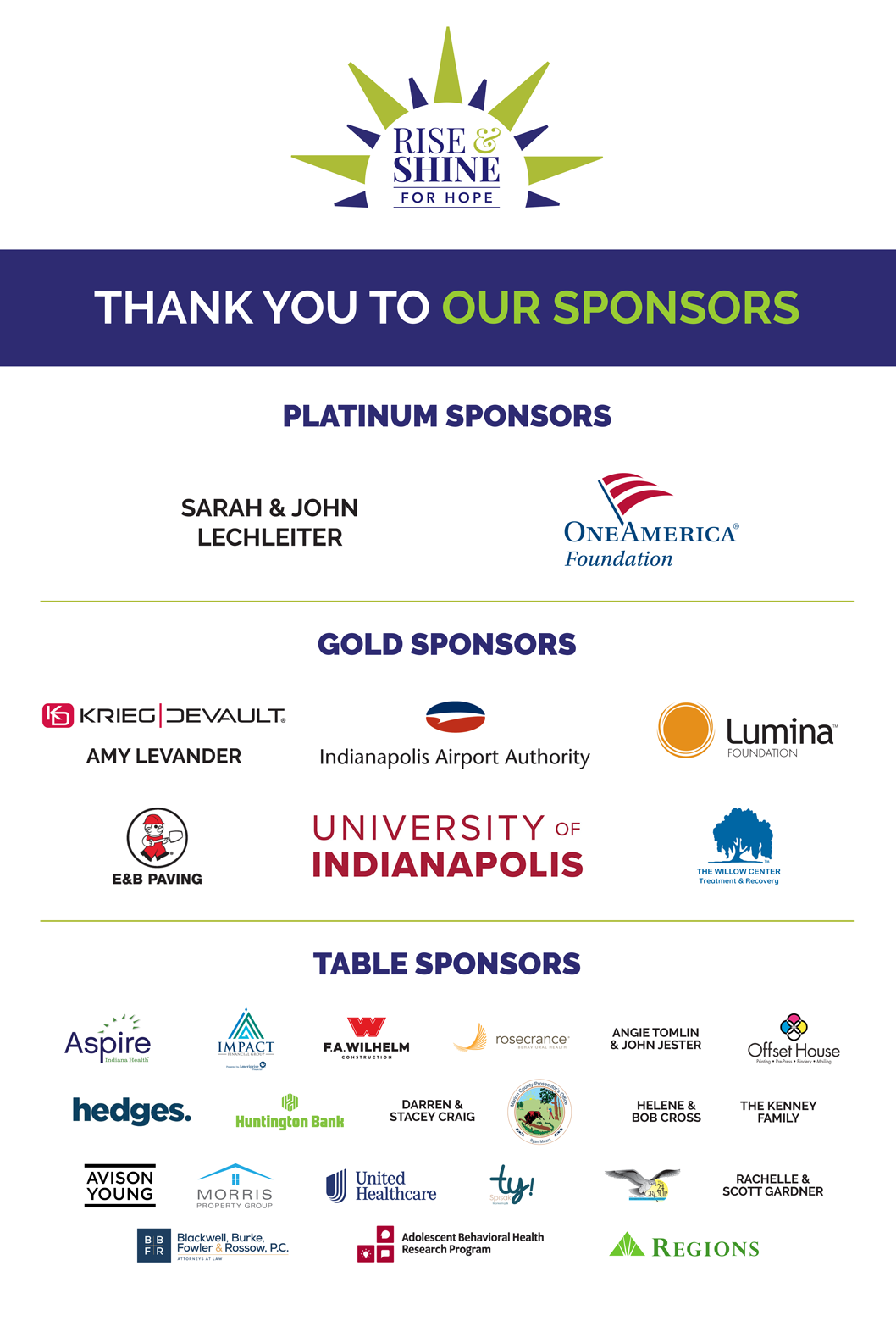 The 2025 Rise & Shine for Hope Breakfast is Thursday, November 6th from 7:30-9 a.m. at the Ivy Tech Culinary and Events Center!